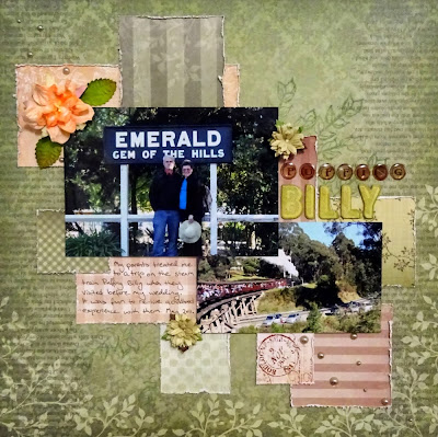 This layout features photos taken during a trip with my mum and dad on Puffing Billy, a steam train through the Dandenongs in Victoria. It's such a fun ride and everyone sticks their legs out of the windows as they ride. On the day we went we hadn't realised it was the last day of school holidays though so it was PACKED!
